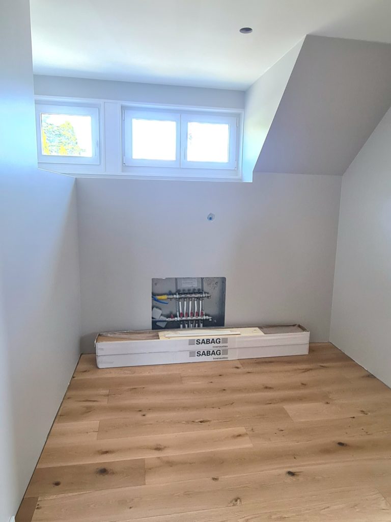 Au premier étage, il y a désormais deux chambres, un grand hall pouvant être utilisé comme bureau ou chambre d’amis et une salle de bain.