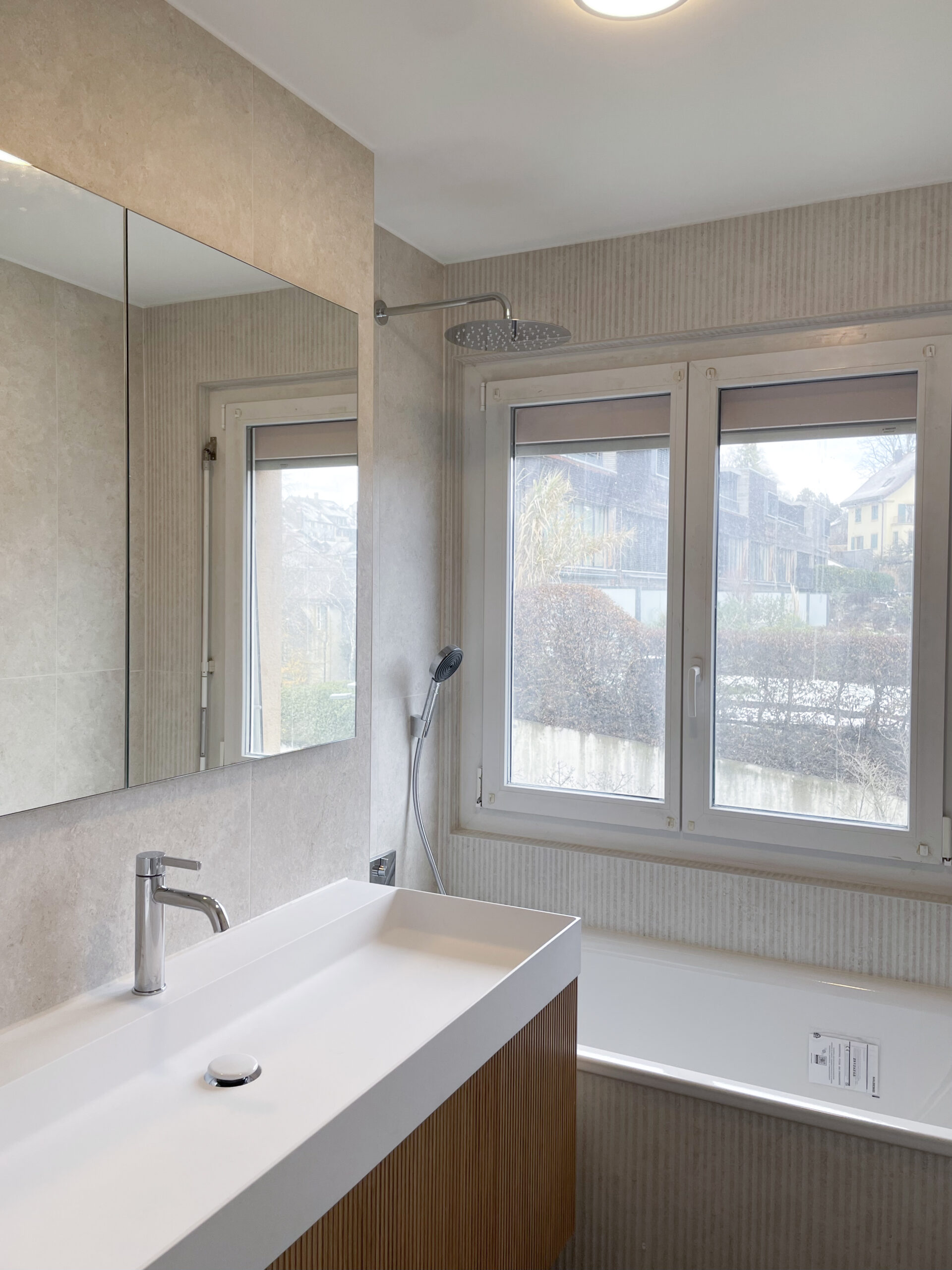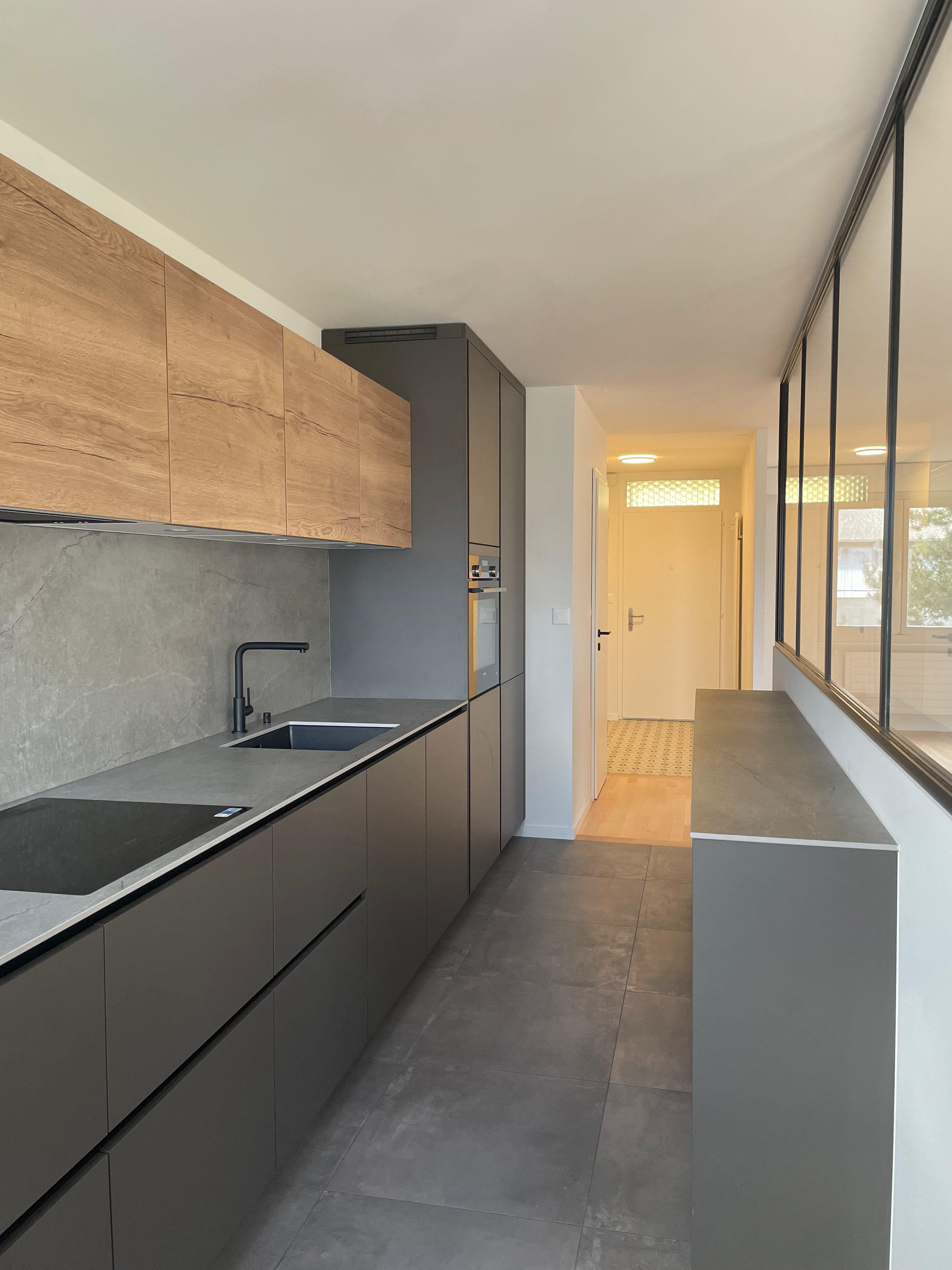 Notre client nous a sollicitées pour rénover l’appartement hérité d’un parent, un projet impliquant de nombreux travaux. Le principal défi a été de moderniser l’aménagement de l’espace et le remettre au goût du jour, tout en conservant le paquet existant. Cette transformation a permis d’apporter des espaces plus lumineux et plus optimisés.