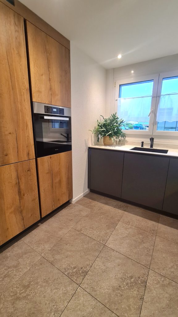 Cet appartement situé dans une tranquille PPE n’avait jamais été rénové depuis l’entrée des nouveaux propriétaires. Ces derniers avaient envie de rénover leur pièce de vie ainsi que la cuisine afin que cela reflète plus leur goût et les tendances actuelles.