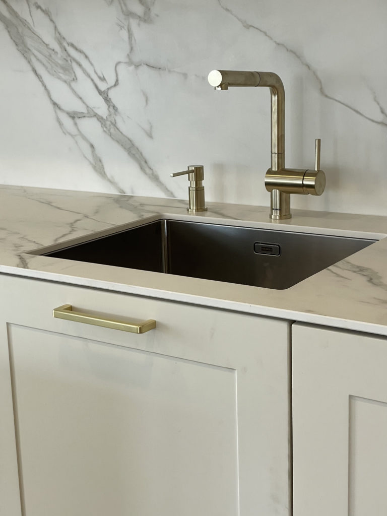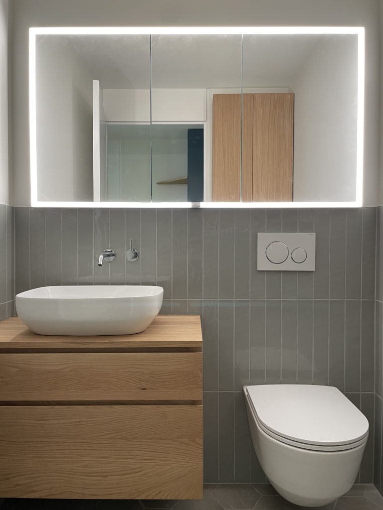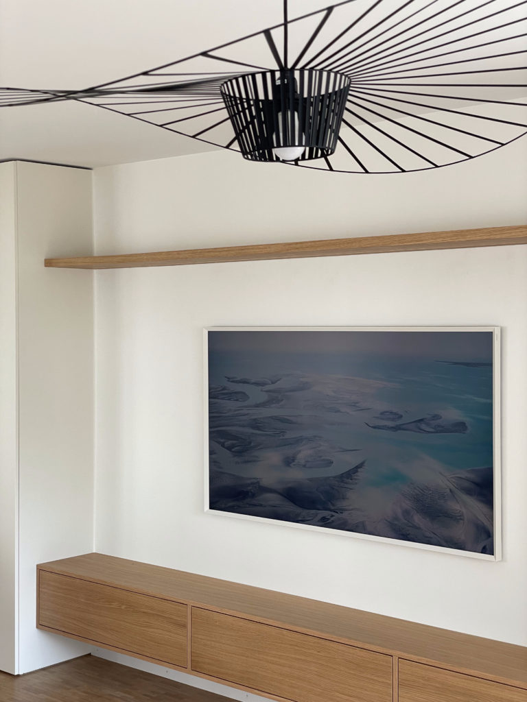 Nous avons reçu comme mission de rénover et transformer un appartement dans son intégralité. La plus grande modification a été de démolir une cloison pour agrandir la cuisine, créer un espace de vie ouvert, amener davantage de lumière et apporter de l’harmonie à l’ensemble.